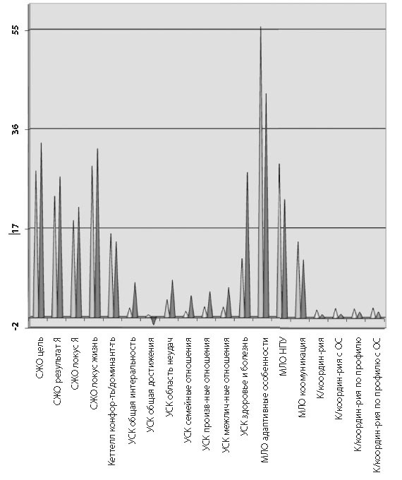 Рис. 1. Сравнительный анализ склонности к риску спортсменов (светлый цвет) и военнослужащих (темный цвет) Средние показатели сравниваемых групп по шкалам СЖО "цель в жизни", "результат", "локус Я", "локус жизнь" вошли в интервал средних значений. При этом у военнослужащих целеустремленность, ориентация на результативность жизни, свобода выбора, контроль в принятии решений и осознание того, что "Я - хозяин своей жизни" выше, чем у спортсменов. Средние показатели сравниваемых групп по шкале фактор "E" (конформность / доминированность) 16ЛФ Кеттелла составили: для спортсме нов - 16,03, для военных - 14,50. У спортсменов показатель шкалы находится в интервале (Е>16), что свидетельствует о доминантности. У военных результат по данной шкале находится в пределах среднестатистической нормы Е (11&16). Как в спорте, так и на военной службе через выработку волевых качеств готовые к риску респонденты преодолевают объективные и субъективные трудности, но с разными целями. В рамках достижения цели мы получаем ответ на вопрос о преобладании "доминированности" у спортсменов. Целью спортсмена является успех в любых его проявлениях, цель военнослужащего сопряжена, как правило, с долгом и жизнью. Согласно интерпретации данных методики УСК (Уровень субъективного контроля) все показатели шкал (за исключением показателя "интернальность в области достижений" у военных) вошли в интервал высоких значений, который соответствует высокому уровню субъективного контроля над любыми значимыми ситуациями. При этом необходимо отметить, что уровень субъективной ответственности у военных оказался значительно выше, чем у спортсменов по всем из перечисленных шкал. В области достижений у военнослужащих показатель характеризует испытуемых данной выборки как экстерналов и сводится к приписыванию своих достижений к везению, счастливой судьбе или помощи других людей. Вопрос жизни и смерти, о котором приходится задуматься каждому солдату, побывавшему в горячих точках страны (а именно эта группа военнослужащих составила нашу выборку), приводит к переоценке жизненных позиций и ценностей, появлению религиозных чувств, философского характера размышлений о смысле жизни, вера в судьбу и счастливый случай. Возможно, это составляет основу выявленной экстернальности у военнослужащих. Средние показатели шкал МЛО "адаптивные способности" находятся в пределах среднестатистической нормы в обеих группах, но у спортсменов в абсолютном значении они преобладают. Средние показатели сравниваемых групп по шкале "комму никативный потенциал" МЛО составили: для спортсменов - 14,50 баллов, для военных - 11,06 баллов и находятся в пределах среднестатистической нормы. Но при этом, судя по абсолютным значениям, спортсмены более коммуникабельны. Таким образом, мы видим достаточно существенные индивидуально-психологические различия испытуемых двух групп: готовностью к риску в спорте и боевой готовностью к риску. Вполне вероятно, что сама деятельность, имеющая разные целевые установки формирует те или иные личностные качества. Но думается, что нельзя сбрасывать со счета более глубокие психологические и даже биологические особенности индивида, лежащие в основе их развития.