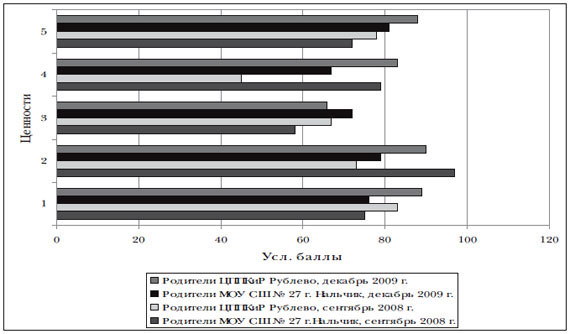 показателей выраженности стилей родительского отношения Полученные результаты свидетельствуют о том, что наблюдается определенная динамика в выраженности стилей родительского отношения. Так по мере работы с семьей снижается выраженность строгого, автономного, потакающего и зависимого стилей. А выраженность объяснительного, компромиссного, содействующего, сочувствующего и ситуативного стилей заметно возрастает. Здесь необходимо добавить, что выявление стратегии поведения конкретного родителя с ребенком позволяет выстроить своеобразный индивидуальный профиль родительского поведения, характеризующий его стиль воспитания, и определенным образом влиять на него в ходе занятий. Анализ оценки ребенка родителем показал, что в начале экспериментальной работы большинство родителей отрицательно или нейтрально оценивали своего ребенка. В ходе занятий с использованием различных игр и методик, направленных на развитие коммуникативных способностей и навыков взаи модействия взрослых и детей возросло число родителей положительно оценивающих своих детей, хотя оценка при этом дифференцируется и ужесточается. Самооценка себя как успешного родителя при этом наоборот снижается и увеличивается число родителей отрицательно оценивающих свои качества, что связано по нашему мнению с расширением знаний родителей о стилях семейного воспитания, возрастных особенностях детей и по другим темам включенным нами в программу родительского всеобуча. Результаты данных полученных в ходе анкетирования имеют высокую корреляционную зависимость с показателями, полученными нами с использованием Опросника родительского отношения А.Я. Варги и В.В. Столина (r=0,73) и анализа семейного воспитания Э.Г. Эйдемиллера и В.В. Юстицкиса (r=0,68). Таким образом, работа показала, что в родительском отношении присутствуют личностное и предметное начало. Личностное определяет отношение родителей к ребенку как к целостной, уникальной личности. Предметное предполагает оценку его отдельных качеств. Характер предметного отноше ния существенно меняется в ходе экспериментальной работы и проявляется прежде всего в возрастании значимости интеллектуального и физического развития ребенка. Родительское отношение определяет стиль воспитания ребенка и оценку ребенка родителем, которая меняется от безоценочной к доминированию оценочной позиции родителя.