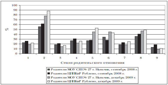 1 - строгий; 2 - объяснительный; 3 - автономный; 4 - компромиссный; 5 - содействующий; 6 - сочувствующий; 7 - потакающий; 8 - ситуативный; 9 - зависимый Рис. 2. Динамика