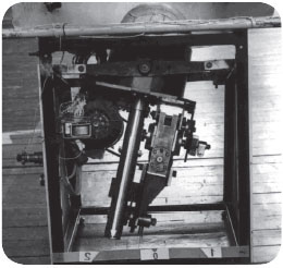 Рис. 2. Вид катапульты при вариативном моделировании направления приема мяча после подачи Блок контактных датчиков 6 (Д2) предназначен для остановки первого и второго секундомеров и для запуска и остановки третьего секундомера. Каждый контактный датчик выполнен из двух подпружиненных полуколец (рис. 3), в верхней части которых есть наружные зацепы для закрепления их на пальцах. Длина полуколец по окружности колеблется от 35 до 55 мм, их ширина их равна 5 мм. Верхние и нижние полукольца датчика замыкаются при усилии 50 г. Обычные механические датчики очень ненадежны, к тому же они мешают обработке мяча при передаче. Датчики предложенной конструкции лишены этих недостатков.