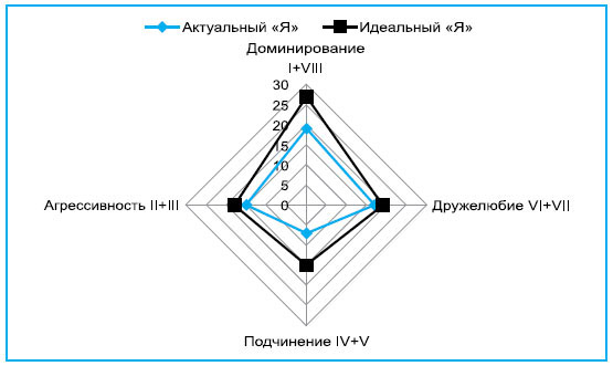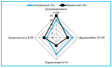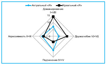 Рис. 4. Соотношение актуального и идеального профилей личности гандболистки - линейной нападающей