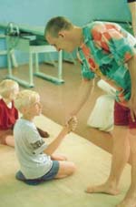 далек от ложной скромности: - Пожалуй, да, - отвечает он без долгих раздумий. - Хотя сейчас очень неплохо прыгают китайцы. Да и у нас хорошие ребята. Тот же Тимошинин, например, по итогам "Гран при" занял на вышке второе место, вслед за мной. - Есть ли виды прыжков, которые ты, скажем так, недолюбливаешь? - Наверное, это "прыжок Тарасова" - в три оборота с кистей. Но это, скорее всего, потому, что я до сих пор не оправился до конца от травмы руки. |