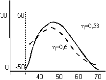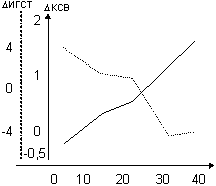 Анализ величин среднегрупповых приростов показателей общей работоспособности и специальной выносливости обнаружил существенное влияние структурных особенностей распределения тренировочных нагрузок на динамику функциональных возможностей борцов. Как видно из рис. 2, наблюдается практически линейная положительная зависимость между величинами прироста КСВ и долей работы гликолитического анаэробного характера (r=0,76). Динамика прироста показателя общей работоспособности (D ИГСТ) в этом же случае имеет менее выраженную (r=-0,36) отрицательную зависимость. Проведенное исследование доказало правомерность выдвинутой теоретической модели построения этапа предсоревновательной подготовки борцов, с акцентом на воспитании специальной выносливости и предусматривающей выполнение больших объемов тренировочной работы гликолитического анаэробного характера. В практическом плане необходимо отметить, что проблема воспитания специальной выносливости борцов не является конечной целью подготовки спортсменов и обязательно должна рассматриваться через призму спортивных достижений. В этой связи была проведена экспериментальная проверка предположения о существенном влиянии структурных особенностей распределения тренировочных нагрузок в макроцикле подготовки высококвалифицированных борцов на результаты соревновательной деятельности. Динамика показателей соревновательной деятельности оценивалась по результатам участия спортсменов сборной команды ВДФСО профсоюзов по борьбе дзюдо в соревнованиях одного уровня значимости - международных турнирах категории А. Макроцикл экспериментальной подготовки составил 129 календарных дней и был разделен на три мезоцикла: первый - втягивающий 33-дневный мезоцикл, второй - 42-дневный мезоцикл базовой подготовки, третий - 54-дневный предсоревновательный мезоцикл. Объемы реально выполненных тренировочных нагрузок гликолитического анаэробного характера у различных спортсменов экспериментальной команды находились в диапазоне от 4236 мин до 16 754 мин за весь тренировочный макроцикл. В результате проведенного исследования было обнаружено достоверное влияние структурных особенностей распределения тренировочных нагрузок гликолитического анаэробного характера на динамику показателей эффективности (r = 0,6) и надежности ( r = 0,53) соревновательной деятельности борцов. На основании анализа характера динамики показателей соревновательной деятельности борцов (рис. 3) в зависимости от доли выполненной работы гликолитического анаэробного характера было обнаружено, что наиболее высокие темпы их прироста отмечаются в довольно узком (от 40 до 48 %) диапазоне работы такого характера.