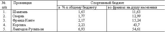 По данным департамента молодежи и спорта Верхнего Рейна, анализировавшего в 1993 г. работу 443 спортивных клубов, их среднегодовой бюджет составлял 122,9 тыс. фр., в т.ч. поступления от соревнований - 29%, членские взносы - 24,1%, различного рода субсидии - 25,1%, спонсорские вклады - 3,2%, другие доходы - 18,4%. На что же расходовались данные средства? Экипировка и оборудование - 28,4%, проведение соревнований - 23,3%, административные расходы - 13%, транспортные расходы на участие в соревнованиях - 12,4%, зарплата тренерского состава - 12,1%, арендная плата - 10,8%. Строительство спортсооружений является прерогативой территориальных общин, , в частности коммун. Во Франции больше 90% спортивной собственности принадлежит территориальным общинам (коммунам). Как правило, эти спортсооружения управляются самими коммунами и финансируются ими. В коммунах существует две формы финансирования спортсооружений: 1) за счет налогоплательщиков; 2) за счет пользователей. Форму выбирает сама коммуна. Как правило, превалирует смешанное финансирование. Законы, определяющие компетенции территориальных общин (кодекс для коммун, законы о децентрализации 1982 - 1983 гг.), не имеют пунктов о спорте. Закон о спорте (1984 - 1992 гг.) не ставит перед территориями, включая общины, определенной задачи в области спорта. Он лишь одобряет их участие в его организации. Посредничество территориальных общин является скорее политическим выбором в общих положениях о компетенции муниципального совета. Это положение идентично и для региональных советов. То есть избранные на местах органы сами решают иметь или не иметь спортивный орган в своей структуре. О том, какое значение во Франции придается роли и участию местных органов власти в развитии спорта, говорит и проведение в 1993 г. конференции "Спорт и территориальные общины", а в 1995 г. - форума, на котором присутствовало более 900 участников, на тему: "Какими будут завтра общественные территориальные спортивные органы?" Из приведенного нами материала видно, что спорт в Германии и Франции уже не может обойтись без помощи местных органов власти. По нашему мнению, первостепенную роль в развитии спорта в ведущих зарубежных странах играет прежде всего объективное понимание роли спорта в развитии общества, его необходимости в здоровом образе жизни человека. Уже с детских лет у многих людей вырабатывается потребность в занятиях различными видами физической активности и спорта. Занятия спортом в школе, колледже или университете укрепляют эту привычку, превращая ее в потребность. А нормальные условия жизни для большинства населения позволяют заниматься различными видами спорта, не думая о расходах. Именно в этом вопросе - в оказании помощи занимающимся - зачастую многие муниципалитеты и видят свою главную роль. Появление во второй половине 90-х гг. тенденции сокращения расходов местных органов власти на спорт не служит в рассматриваемых нами странах, да и в России, основанием для отказа в этой помощи. Спорт и местные органы власти совместно ищут новые формы сотрудничества.