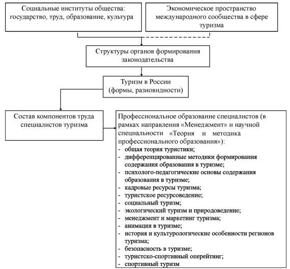 Следует учесть, что вышеприведенный алгоритм построения профессионально-квалификационного профиля кадровых ресурсов подлежит пересмотру и обновлению по мере изменений конъюнктуры рынка труда в сфере туризма. Речь в данном случае идет не о расчетах количественной потребности специалистов, а исключительно об их качественном составе и особенностях построения непрерывной системы образования. Анализ запросов практики позволил установить требуемую направленность обучения в туризме, где многопрофильность образования связана с инфраструктурой обслуживания и технологиями досуга, оздоровления населения; центральное место занимает туристско-экс курсионная работа с ориентацией на социальное воспитание молодежи, обеспечение безопасности нахождения туристов в зонах экологического загрязнения, профилактика асоциального поведения, адаптация к условиям труда и быта и др. В перспективе специалисту по туризму может быть присвоен статус социального работника, способного работать с группами социального риска. Следовательно, введение новых специальностей и соответственно форм познавательно-образова тельной деятельности должно обеспечить высокий социальный эффект возрождения социального туризма - главного носителя культурных ценностей народностей России.