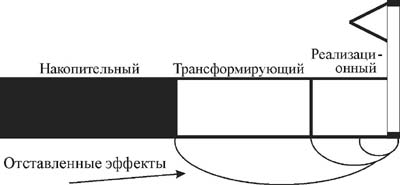 Рис. 2. Формирование этапа подготовки из трех блоков-мезоциклов с учетом возможного совпадения различных по длительности отставленных эффектов В свете вышеизложенного нетрудно сформулировать основные положения альтернативной концепции построения тренировки, позволяющей преодолеть или устранить противоречия классической модели. Эта нетрадиционная модель получила название блочного построения, или блоковой композиции тренировки. Нетрадиционная модель, как и всякое относительно новое явление, понимается и трактуется по-разному и в сущности в литературе описана крайне мало. Настоящим предлагается следующее ее толкование: 1) важнейшим смысловым компонентом концепции является тренировочный блок-мезоцикл концентрированного тренировочного воздействия, в котором количество качеств-мишеней сведено к минимуму; для удобства планирования и анализа предлагается различать три типа блоков-мезоциклов: накопительный (accumulation) - предназначается для развития базовых качеств (чаще всего - аэробная выносливость и максимальная мышечная сила) и базовых технических компонентов; трансформирующий (transmutation) - предназначен для развития более специфических качеств и преобразования накопленного потенциала в специфическую для данного вида спорта подготовленность; основные мишени тренировочного воздействия: специальная (аэробно-анаэробная или анаэробная) выносливость, силовая выносливость, технико-тактическая подготовленность; реализационный (realization) - предназначен для непосредственной подготовки к предстоящим соревнованиям; включает относительно высокий объем скоростных упражнений (алактатных и скоростно - силовых), а также упражнения, моделирующие соревновательную деятельность; 2) в отличие от классической модели, предусматривающей комплексное параллельное развитие многих качеств, альтернативная концепция предполагает последовательное концентрированное воздействие на малое количество качеств-мишеней (обычно не более двух); именно эта высокая концентрация тренировочного воздействия составляет сущность блоковой схемы: ведь спортсмены высокого класса уже адаптированы к разного рода умеренным и даже значительным раздражителям (само слово "блок" предполагает некоторую спрессованную монолитную субстанцию); 3) три различных мезоцикла образуют этап подготовки, который как бы в миниатюре воспроизводит сменность тренировочных воздействий в годовом цикле: базовая подготовка - специализированная подготовка - реализация и участие в соревнованиях; порядок следования блоков-мезоциклов определяется особенностями и длительностью остаточного тренировочного эффекта при развитии различных качеств; в идеале схема этапа должна обеспечить выход к соревнованиям на фоне наилучшей комбинации отставленных эффектов ведущих двигательных качеств (рис. 2); в действительности отставленные эффекты можно продлить, используя поддерживающие целенаправленные занятия и упражнения; 4) годовой тренировочный цикл образуется определенным числом этапов, которые подобно классической схеме уместно группировать в периоды, хотя в этом случае их содержание видоизменяется (в подготовительном периоде планируется участие в соревнованиях, соревновательный период включает блоки базовой подготовки); принципиальные особенности блоковой схемы представ