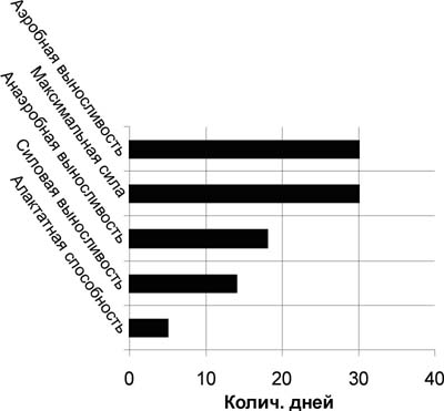 Рис. 1. Остаточные тренировочные эффекты различных качеств после специализированного концентрированного воздействия