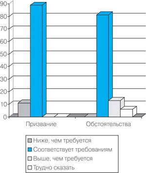 Рис. 2. Самооценка соответствия квалификации выполняемой работе в зависимости от причин работы в качестве тренера Показательно, что исследование 2005 - 2006 гг. выявило существенные различия в структуре мотиваций работы в качестве тренера в зависимости от типа полученного образования (рис.1). Не менее значим фактор "призвание" и для критичности подхода к оценке своей квалификации (рис. 2). Как видим, неудовлетворенность уровнем своей квалификации, что реально служит основой установки на дальнейшее самосовершенствование, более характерна для тренеров, работающих по призванию. Их же оппоненты более самоуверенны. Это понятно, поскольку креативный педагог, работающий не по принципу "от сих и до сих" и полностью "выкладывающийся" в своей деятельности, всегда сможет найти применение своим знаниям и умениям на любом уровне и при работе с любым контингентом подопечных, а потому практически полностью реализует свой потенциал в повседневной работе. Вряд ли он будет оставлять что то "в загашнике" и тем более сомневаться в соответствии своей квалификации реалиям своей деятельности, как это встречается у работающих в силу обстоятельств. Неудивительно, что существенно различны и жизненные планы сопоставляемых контингентов. Среди работающих по призванию мало кто хочет отказаться от педагогической деятельности, а потому их "миграционные планы" связаны в основном с изменением контингента подопечных или с уходом в сферу высшего образования, тогда как у работающих в силу обстоятельств установки иные (рис. 3). Этот факт подтверждает и сопоставление структур жизненных планов. Коэффициент ранговой корреляции в данном случае имеет отрицательную величину (минус 0,69), что свидетельствует о существенном расхождении установок этих контингентов, а следовательно, о существенном значении фактора "призвание" для стабилизации тренерского корпуса и, как мы показали ранее, удержания в сфере тренерской деятельности наиболее ответственного и подготовленного контингента. То, что это так, подтверждает и обращение к такому фактору, как отношение к уходу перспективного спортсмена к другому тренеру (рис. 4). Как видим, тренеры с более широкими взглядами и более образованные акцентируют внимание на создании более эффективных условий совершенствования спортсмена, тогда как сопоставляемый контингент сосредотачивает внимание на личных амбициях тренера. Что же касается соблюдения этики, то дело не столько в самом факте перехода спортсмена, сколько в том, чтобы обставить это соответствующим образом и даже поднять при этом авторитет первого тренера и отдать должное его заслугам. Более широкий кругозор тренеров, работающих по призванию и с более глубоким образованием, подтверждает и использование ими источников информации. Важным аспектом работы тренера в условиях пролонгированного отбора перспективных спортсменов является учет их физиологического созревания, т. е. вопросов вовлечения в физкультурно-спортивную деятельность и участия в ней ретардантов и акселератов. При этом следует учитывать, что детский и подростковый организм прекрасно адаптируется к систематически повышающимся требованиям к выносливости и высоким физическим нагрузкам. Например, адаптация работы сердца происходит у них так же быстро и со столь же сильным эффектом, как у высокотрениро