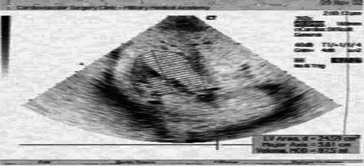 Рис. 3. Левый желудочек с нормальной геометрией - во вторую группу вошли 15 атлетов, также тренирующихся с использованием максимальных и субмаксимальных интенсивных тренировочных нагрузок и неудовлетворительно выступивших на соревнованиях, но, по данным врачебного контроля, все они имели клинические признаки перетренированности и перенапряжения (обморочное состояние, головные боли, боли в области сердца, одышка); - третья группа представлена 8 спортсменами, которые имели травмы плеча, кистей рук, голеней и не набрали физической формы; они тренировались с использованием нагрузок малой интенсивности. Распределение тяжелоатлетов по типу ремоделирования ЛЖ представлено на рис. 4. На рис. 5 показана динамика среднего показателя скорости циркулярного укорочения волокон миокарда ЛЖ по группам. В 1-й группе средняя скорость циркулярного укорочения волокон миокарда ЛЖ увеличилась с 1,04 до 1,68 мс-1, во 2-й - уменьшилась с 1,06 до 0,92 мс-1, в 3-й - увеличилась с 1,29 до 1,35 мс-1.