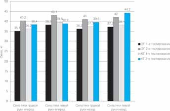 Рис. 1. Динамика силовых показателей испытуемых во время эксперимента