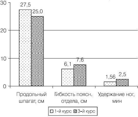 Рис. 2. Показатели уровня специальной физической подготовленности студентов, занимавшихся на отделении "ритмическая гимнастика"