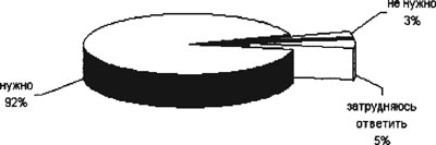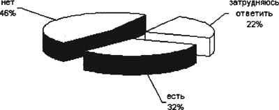 Несомненно, что важнейшим фактором, влияющим на содержание, формы проведения, возможности выбора в области молодежного досуга, является существование системы организации этой деятельности со стороны государства, общественных организаций, органов самоуправления. Сложившейся в советское время системы такой организации, достаточно четкой, хотя и нередко излишне регламентированной и, как известно, идеологизированной, сегодня практически не существует. Обсуждение этих вопросов становится все более активным в обществе, тем более что и само население весьма остро ощущает проблемы в этой сфере. В частности, на вопрос: "Как Вы думаете, сегодня в России делается достаточно или недостаточно для организации свободного времени подростков?" ответы 1500 взрослых респондентов в рамках уже упомянутого исследования (по репрезентативной выборке) распределились следующим образом (рис. 1): На вопрос: "Нужно ли, чтобы организацией досуга подростков занимались специальные люди или организации?" были получены столь же конкретные ответы (рис. 2). На вопрос: "А есть ли там, где Вы живете, люди и организации, которые занимаются организацией досуга подростков?" ответы распределились таким образом (рис. 3). Как минимум два обстоятельства просматриваются в результатах этого опроса: а) организация досуга подростков пока в большей мере - проблема самих подростков, чем общества, государства, родителей; б) взрослые считают, что вопросы досуга их детей не являются сферой их собственной ответственности в той или иной форме, и находятся в ситуации ожидания соответствующей деятельности со стороны государства. Представляется, что в отношении этой позиции, ориентированной на патерналистские ценности, взрослые существенно расходятся с представлениями и ориентациями подростков. Характерной особенностью досугового поведения населения в области активных форм традиционно (это отмечается по результатам исследований на протяжении многих десятилетий) являются "ножницы" между вербальными установками респондентов социологических опросов на занятия спортом и реальной их включенностью в эту практику: почти единодушно отмечая значимость и необходимость такого рода занятий для сохранения здоровья, для интересного проведения досуга и т.п., лишь до 6-9% опрошенных в разных исследованиях подтверждают эту ориентацию на поведенческом уровне. В среднем пассивное "потребление" спорта (соревнований, зрелищ, главным образом в телевизионном варианте), характерно для 75-81% участников социологических опросов.