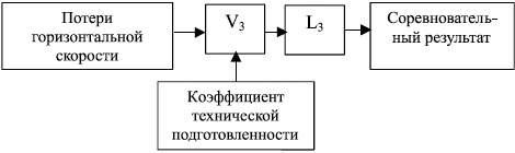 Рис. 4. Характерные связи в структуре технической подготовленности прыгуна. Обозначения: V3 - горизонтальная скорость прыжка; L3 - длина прыжка