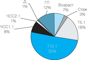 "Удельный вес" показателей в прогнозе изменения скорости руления под влиянием обучения. Условные обозначения: Т5.1 - время выполнения 5 циклов руления в 1-й день подготовки; Т10.1 - время выполнения 10 циклов руления в 1-й день подготовки; ЧСС1.1 - частота сердечных сокращений до выполнения контрольного упражнения на автомобильном тренажере; ЧСС2.1 - частота сердечных сокращений после выполнения контрольного упражнения на автомобильном тренажере; Д - суммарная динамометрия левой и правой кисти; ГП - время выполнения контрольного упражнения с гимнастической палкой Анализ результатов комплексного исследования позволил выделить 4 области, в которых могут группироваться индивидуальные показатели водителей. Область I представляется наиболее благоприятной, она соответствует должному развитию координации движений у водителей (профессиональных двигательных навыков), умению своевременно распознавать дорожные ситуации, в совокупности - малой вероятности неблагоприятного выхода из экстремальной ситуации. Профессиональные навыки таких водителей практически не нуждаются в коррекции, требуется лишь работа, направленная на сохранение достигнутого уровня. Область II наряду с достаточным развитием профессионально значимых двигательных навыков характеризуется более высокой вероятностью неблагоприятного выхода из критической ситуации. Область III в целом соответствует той же вероятности неблагоприятного выхода из критической ситуации, что и область I, но профессиональные навыки недостаточно развиты и не обеспечивают надежности действий. Область IV характеризуется недостаточным уровнем развития двигательных навыков и высокой вероятностью неблагоприятного выхода из критической дорожно-транспортной ситуации. Водители, чьи результаты группируются в области IV, проблемны, их надежность недостаточна. Заключение. На самой ранней стадии обучения может быть выявлена способность к овладению профессионально значимыми навыками для управления транспортными средствами и составлен объективный прогноз роста мастерства. Следовательно, в процесс профессиональной подготовки может быть внесена соответствующая корректива, что обеспечивает к концу подготовки достижение необходимого уровня надежности в развитии управляющих действий каждого курсанта. Наиболее значимыми из изучаемых показателей для прогноза результативности обучения оказались: время теста (10 и 5 циклов руления) в 1-й день подготовки, время теста с перехватами гимнастической палки, предстартовая ЧСС и возраст. Влияние стажа управления транспортным средством оказалось маловыраженным (около 3,0%). Водители-профессионалы по результатам тестирования в большинстве случаев значительно превосходили водителей "любителей". Однако и в группах профессиональных водителей оказались лица с большими дефектами как в профессиональной подготовке, так и в оценке дорожно-транспортных ситуаций и результата своих действий. Литература 1. Боуш Р.Л. Психологическая и биолого-педагогическая оценка профессиональной надежности водителей / Р.Л. Боуш, А.А. Захаров, В.А. Алексеенко, Н.М. Науменко // Отчет о НИР (заключительный). - М., 1999, № гос. регистрации 01.99.0010578, инв. № 02.99.0005927, 28.10.1999. - 28 с., илл. 2. Зациорский В.М. Спортивная метрология. Проблема оценки спортивных достижений: лекция для студентов. Утв. 8 окт. 1975