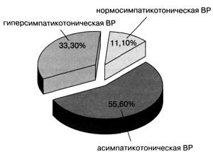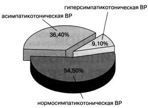 Рис. 3. Частота встречаемости различных типов вегетативной реактивности в группе спортсменов с меньшим уровнем спортивного результата Выводы Показатели вегетативного обеспечения сердечнососудистой системы имеют характерные особенности у спортсменов с различным уровнем спортивного результата. При более высоком спортивном результате в ответ на максимальную физическую нагрузку уровень функционирования вегетативной нервной системы более рациональный (меньший индекс напряжения) и обеспечивает адекватную этим нагрузкам деятельность сердечно-сосудистой системы. Вегетативное обеспечение деятельности организма спортсменов, характеризующееся величиной индекса напряжения 200-250 у.е. - является оптимальным при адаптации к 15-минутной нагрузке на трехроликовом велостанке. Вегетативное обеспечение деятельности организма спортсменов, характеризующееся значениями индекса напряжения менее 30 у.е. и более 300 у.е., свидетельствует о необходимости коррекции тренировочного процесса и консультации врача. Список литературы 1. Баевский P.M. Прогнозирование состояний на грани нормы и патологии / P.M. Баевский. - М.: Медицина, 1979. - 298 с. 2. Вайцеховский С.М. Книга тренера / С.М. Вайцеховский. - М.: Физкультура и спорт, 1971. - 311 с. 3. Жемайтите Д.И. Вегетативная регуляция синусового ритма у здоровых и больных / Д.И. Жемайтите // Анализ сердечного ритма. - Вильнюс: Мокслас, - 1982. - С. 22-32. 4. Иванов В.В. Комплексный контроль в подготовке спортсменов / В.В. Иванов. - М.: Физкультура и спорт, 1987. - 256 с. 5. Левин Р.Я. Управление тренировкой квалифицированных велосипедистов-шоссейников на основе использования пульсовых критериев с учетом закономерностей адаптации к нагрузке / Р.Я. Левин, A.M. Hoyp, А.А. Багиянц // Управление процессом адаптации организма спортсменов высокой квалификации: Сб. науч. тр. / Киевск. гос. ин-т физ. культуры. - Киев, 1992. - С. 154-165. 6. Мартынов B.C. Комплексный контроль в циклических видах спорта (на материалах лыжных дисциплин): Дис. ... д-ра пед. наук в виде научного доклада: 13.00.04 / B.C. Мартынов; Гос. дважды орд. ин-т физ. культуры им. П.Ф. Лесгафта. - С.-Пб., 1992. - 70 с. 7. Приходько В.И. Профессиональный отбор и врачебный контроль за детьми, занимающимися спортивным плаванием / В.И. Приходько, Л.М. Беляева // Методические рекомендации. - Минск, 1999. - 28 с. 8. Шупикова Е.Н. Комплексный контроль специальной подготовленности: Дис. ... канд. пед. наук: 13.00.04 / Е.Н. Шупикова; Бел. гос. университет физ. культуры. - Минск, 2005. - 155 с. |