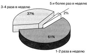 Актуальность исследования. Повышение уровня спортивных достижений альпинистов требует поиска эффективных путей спортивной подготовки. Сложная структура деятельности альпиниста предъявляет высокие требования к уровню его функциональной готовности. Поэтому вопрос готовности к преодолению экстремальных ситуаций является одним из основных. В связи с этим проблема непрерывности процесса специальной силовой подготовки альпинистов и необходимости специализированной круглогодичной физической и технической подготовки спортсменов с применением тренажерных комплексов приобрела особую остроту и значимость.В настоящее время тренажеры являются одним из важных средств подготовки альпинистов в предсезонный период, до выезда горы. Использование специальных тренажерных устройств в тренировочном процессе спортсменов открывает широкие возможности для варьирования всеми режимами работы мышц, что значительно увеличивает эффективность физической подготовки альпинистов. Потому изучение возможностей тренажерной подготовки альпинистов, совокупности развития специальных для деятельности качеств и учета индивидуальных различий занимающихся позволит совершенствовать систему подготовки спортсменов. Цель исследования. Анализ особенностей использования тренажерных технологий в процессе подготовки альпинистов. Задачи: 1. Провести анализ особенностей применения тренажерных технологий альпинистами. 2. Изучить отношение альпинистов к методикам использования тренажеров в предсезонный период. Методы исследования: 1. Анализ литературных данных; 2. Анкетирование; 3. Опрос; 4. Методы статистического анализа. Организация исследования: Анкетирование проводилось с апреля по сентябрь 2009 г. В нем приняли участие более 60 альпинистов и скалолазов различной квалификации (от 3-го разряда до МС) в возрасте от 18 до 50 лет. Обсуждение результатов. На начальных этапах физической и технической тренировок альпинисты получают хорошую общефизическую подготовку путем применения большого количества общеразвивающих и специальных упражнений. Специальная же физическая и техническая подготовка занимает вначале незначительное место. При достижении определенного уровня мастерства специальная подготовка начинает преобладать над общей. В настоящее время дальнейшее улучшение спортивных результатов должно идти по пути применения других средств, повышающих эффективность занятий без значительного возрастания объема и интенсивности тренировочной работы. В процессе обучения приемам лазанья, альпинисты применяют различные типы тренажеров, которые можно разделить на три группы: 1-я группа - тренажеры для совершенствования скальной подготовки - скалодромы, кампус -борды, систем-борды; 2-я группа - тренажеры для совершенствования ледовой подготовки - ледодромы; 3-я группа - тренажеры для отработки техники и приемов страховки. Нас интересует первая группа тренажеров, предназначенная для совершенствования техники лазанья на скальном рельефе. Чтобы выяснить, насколько часто альпинисты используют тренажеры, мы провели анкетирование с опросом действующих спортсменов. В результате анкетирования выяснилось (рис. 1), что большая часть альпинистов (61%) посещают тренажерные комплексы 1-2 раза в неделю, около трети спортсменов (37%) - 3-4 раза в неделю и только 2% ис