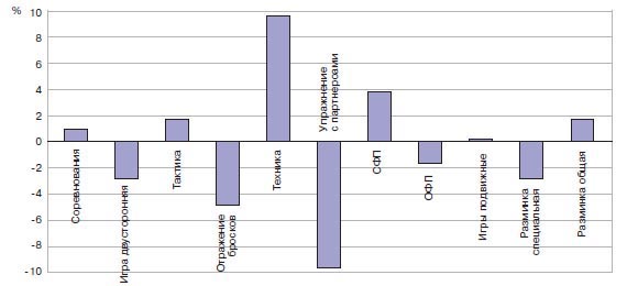 Рис. 1. Соотношение разницы упражнений различной