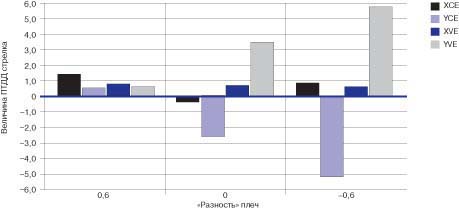 Диаграмма 1. Изменение ПТДД стрелка в зависимости от варьирования "разности" плеч (Т. Сегина)