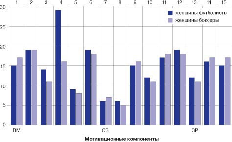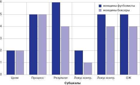 Рис. 1. Смысложизненные ориентации женщин-боксеров и футболистов