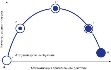 Актуальность исследования. Одной из кардинальных составляющих процесса подготовки спортсменов, в том числе в экстремальных видах спорта, является освоение новых двигательных действий. Структурообразующим фактором этого процесса является динамика уровня обученности и, прежде всего, динамика формирования и сопутствующих видоизменений новых для спортсмена - двигательного умения и двигательного навыка. Особенно важен в этом контексте фактор автоматизации двигательного действия, специфика которого во многом определяет весь процесс обучения и технического совершенствования в спорте. Однако имеющаяся в литературе трактовка этих понятий и всей концепции ступенчатого развития процесса овладения двигательным действием, упражнением не отвечает современным представлениям об обучении и техническом совершенствовании в спорте. Цель исследования заключается в детализации ступенчатого формирования двигательного умения-навыка с выделением уровней обученности, позволяющих конкретизировать весь процесс освоения, совершенствования и практической эксплуатации технического приема, спортивного упражнения. Организация и методы исследования. Сообщение опирается на многолетние исследования автора и его сотрудников, в ходе которых подготовлено и защищено более 30 диссертаций. Основные методы исследования: изучение специальной литературы, педагогические наблюдения, педагогический эксперимент, исследования биомеханики спортивных движений, математическая статистика. Обсуждение результатов исследования. Истолкование понятий "умение" и "навык" до настоящего времени остается неоднозначным, но большинство авторов [2-6 и др.] склоняется к трактовке, согласно которой двигательное умение (ДУМ) - это приобретенное упражнение - способность выполнять новое для спортсмена двигательное действие под контролем сознания. Обычно подчеркивается, что ДУМ лишь начальная и не вполне надежная форма владения упражнением, характерная несовершенством техники двигательных действий, более или менее частыми, в том числе грубыми ошибками. В свою очередь, двигательный навык (ДН) это приобретенная обучением и тренировкой способность выполнять двигательные действия в определенной степени автоматизировано. В отличие от ДУМ, добротно сформированный ДН, характеризуется отсутствием выше упомянутых недостатков и трудностей исполнения. Сопоставляя свойства ДУМ, можно видеть, что основной причиной, определяющей различия в этих уровнях освоения двигательного действия, является степень автоматизации двигательных действий спортсмена [1, 4]. Автоматизация действий вырабатывается постепенно и последовательно, по мере того как упражнение, соответствующее целевому навыку, повторяется во все большем количестве практических реализаций. Поэтому переход на автоматизированное управление двигательным действием не может быть одномоментным и "полным"; он носит постепенный и непрерывный характер, представляя собой последовательное расширение зоны подсознательного контроля двигательного действия (по принципу "навыка") за счет сегментов управления, ранее располагавшихся за пределами автоматизированного действия и до этого контролировавшихся осознанно (по принципу "умения"). Т.е. на самом деле "двигательный навык" это система "навык - умение" с определенной с