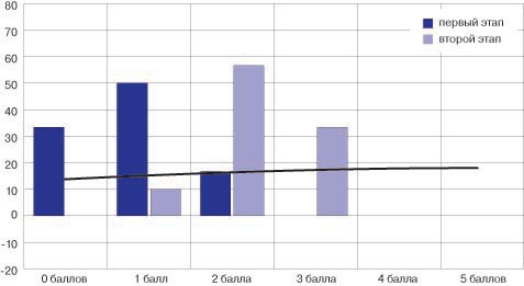 Рис. 1. Распределение результатов оценки функционального состояния после тренировки на первом и втором этапах исследования Примечание: уровень функциональных возможностей и психофизиологических резервов: 0 баллов - крайне негативный; 1 балл - негативный; 2 балла - низкий; 3 балла - удовлетворительный; 4 балла - оптимальный; 5 баллов - высокий. Заключение Юные спортсмены, достигшие высших результатов в спорте, представляют собой контингент повышенного риска срыва механизмов адаптации. У представителей данной возрастной группы спортсменов требуется особый контроль функциональных возможностей и психофизиологических резервов организма. Полученные результаты позволяют предположить, что целенаправленное мониторирование рассматриваемых показателей с целью достижения высокой результативности в спорте при "контролируемой психофизиологической цене" деятельности" резко снижает вероятность исчерпания ресурсных возможностей психики. Таким образом, использование данного метода до начала тренировочного процесса при выявлении негативных значений контролируемых показателей способствует снижению риска срыва механизмов адаптации личности подростка-спортсмена. Применение данного метода после тренировки может способствовать изучению адекватности предлагаемых физических нагрузок текущему функциональному состоянию спортсмена, отслеживанию его восстановления после утомления, индивидуализации планирования объема и интенсивности тренировок. Литература 1. Баевский Р.М. Математический анализ сердечного ритма / Р.М. Баевский. - М.: Медицина, 1984. - 235 с. 2. Звоников В.М. Разработка методики оценки функциональных возможностей воспитанников ДЮСШОР с целью сохранения их психического здоровья / В.М. Звоников, А.А. Зуйкова, Л.Д. Сыркин // Вестник восстановительной медицины. - 2011. - №2 (42). - С 16-19. 3. Маклаков А.Г. Личностный адаптационный потенциал: его мобилизация и прогнозирование в экстремальных условиях / А.Г. Маклаков // Психологический журнал. - 2001. - № 1. - С. 16 - 24. 4. Сыркин Л.Д. Здоровьесбережение спортсменов: профессиографический аспект / Л.Д. Сыркин, А.А. Зуйкова // Материалы Международной научно-практической конференции психологов физической культуры и спорта // "Рудиковские чтения - 10"; под общ. ред. А.В. Родионова., А.Н. Блеера. - М., ГОУ ВПО РГУФКСиТ. - 2010. - 464 с. 5. Устройство психофизиологического тестирования УПФТ - 1/30 - "Психофизиолог". Руководство по эксплуатации НПКФ "Медиком - МТД". - Таганрог: 2008. - 40 с. |