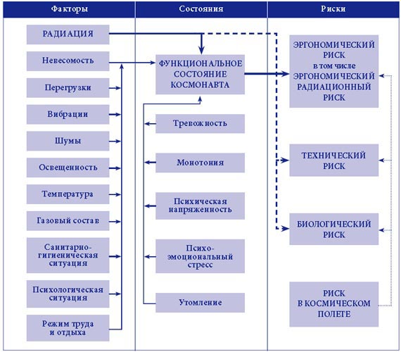 Рис. 1. Место, роль и обусловленность эргономического радиационного риска в длительном космическом полете Таблица 1 Классификация видов деятельности космонавта в космическом полете