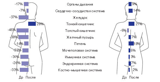 Актуальность. Адаптационные изменения функциональных систем организма сопровождают мышечные нагрузки при подъеме на высоту, передвижении по различным формам горного рельефа, в зависимости от погодных и климатических условий. Особое напряжение в указанных условиях испытывает кардиореспираторная система. Чтобы эффективно противостоять стрессу горной акклиматизации и мобилизовать психофизические механизмы срочной адаптации организма, необходимо применять в функциональной тренировке такие психофизиологические технологии, которые помогут оптимизировать стрессоустойчивость спортсмена, подготовить его к запланированному восхождению. В нашем исследовании рассматривается воздействие дыхательных технологий, основанных на убедительных результатах мирового опыта по использованию достижений йоги, медитации и пранического дыхания, как универсальных духовных практик, позволяющих повысить резервы жизнеспособности человека. Цель исследования. Оптимизация биоэнергетического баланса организма и повышение функциональных резервов дыхательной и сердечно-сосудистой систем альпинистов для активной акклиматизации к условиям высокогорья, основанной на применении в подготовительный период дыхательных технологий. Задачи исследования: 1) Оценить динамику психоэнергетического статуса альпинистов и адаптивные изменения функциональных резервов жизнеобеспечения организма до и после дыхательной тренировки. 2) Оценить эффективность дыхательной тренировки альпинистов по комплексу физиологических показателей - легочной вентиляции, кардио- и гемодинамики. Методы исследования Физиологические методы измерения: • Комплекс функциональной экспересс-диагностики Медискрин (Сенсор мдс-02). • Показатели дыхательной системы: жизненная емкость легких (ЖЕЛ), дыхательный объем (ДО), частота дыхания (ЧД), максимальная вентиляция легких (МВЛ), максимальный дыхательный объем (МДО) (Спирометр автономный СПИРОС-100). • Показатели сердечно-сосудистой системы (измерение ЧСС и АД) (Тонометр на запястье Panasonic EW 3036). На (рис. 5.) мы видим состояние внутренних органов до применения дыхательных упражнений: 10 внутренних органов в левой стороне и 6 органов в правой стороне находятся в дисбалансе, 11 органов в коридоре гиперфункции, 5 органов в коридоре гипофункции, только 8 органов находятся в коридоре нормы. После выполнения дыхательных упражнений (рис. 6.) все внутренние органы спортсменки заходят в коридор нормы, тем самым мы можем предположить о стабилизации работы внутренних органов. Показатели ЧСС во время выполнения дыхательного теста альпинистами Дыхательный тест включает в себя 5 дыхательных упражнений. Результаты представлены по каждому дыхательному упражнению. А именно: изменение ЧСС и насыщения 02 до выполнения каждого дыхательного упражнения и после него. Упражнения подобраны в следующем порядке: 1) Нади-Шодхана способствует настройке всего организма в целом на глубокую концентрацию. 2) Уджжаий разогревает, мягко массирует голосовые связки и сердце. 3) Капалабхати - тонизирует, очищает и вентилирует легкие, производит мягкий массаж сердца и внутренних органов. 4) Полное (йоговское) дыхание воостанавливает и орошает все отделы легких кислородом после выполнения Капалабхати. 5) И снова Нади-Шодхана приводит в равновесие вегетативную систему
