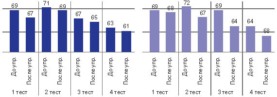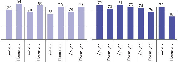 Таблица 2 Сравнительная характеристика прироста средней арифметической показателей дыхательной системы среди женщин к исходным данным (до применения дыхательного комплекса) в течение месяца обследования (в %).