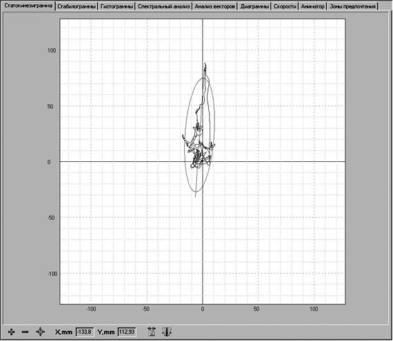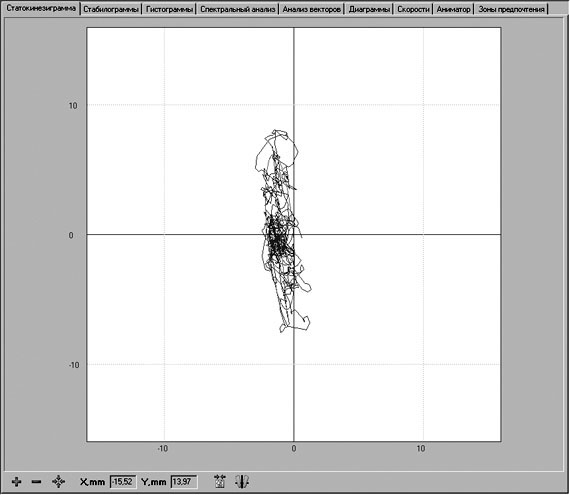 Рис. 2. Траектория смещения общего центра масс системы "спортсмен-оружие" при подготовке к выстрелу и в момент выстрела в начале эксперимента у спортсмена - МСМК